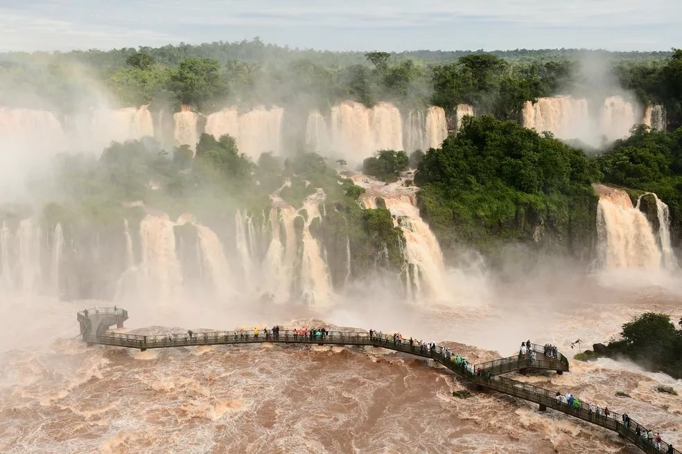 As passarelas próximas as quedas das Cataratas do Iguaçu, em Foz do Iguaçu, no Oeste do Paraná foram liberadas neste sábado (4). Elas haviam sido bloqueadas na sexta-feira (3) após o grande fluxo de água, o maior dos últimos cinco anos, registrado nas quedas mundialmente conhecidas.