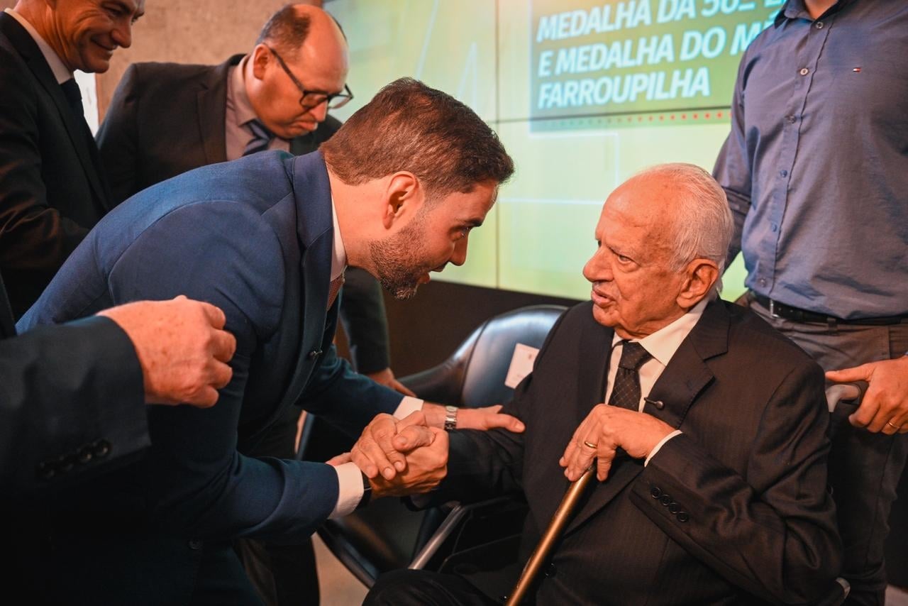 Na cerimônia conjunta de ontem da Assembleia Legislativa para homenagem aos 60 anos do MDB e a entrega da Medalha do Mérito Farroupilha ao vice-governador Gabriel Souza e a Medalha da 56ª Legislatura a Pedro Simon, o ex-governador recordou diversos momentos da sua trajetória política. Ao final, Pedro Simon dirigiu-se ao pré-candidato ao Piratini, o vice-governador Gabriel Souza: