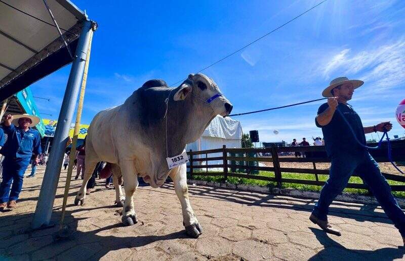“Ele é nascido em nossa cabanha, foi vendido como touro jovem e recomprado dois anos depois. É um bom reprodutor, utilizamos a genética dele, os bezerros que nasceram dele se destacam. Ele foi ganhando peso e a gente viu que ele convertia bem, por isso decidimos vir para a Expointer”, conta Edinaldo.