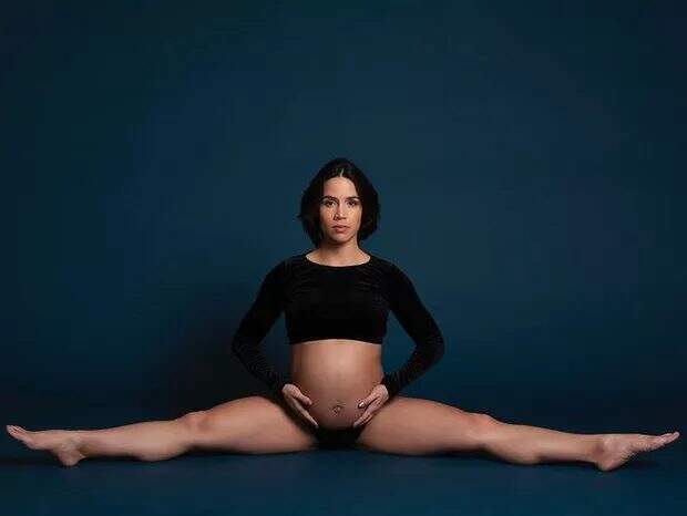Pérola Faria está na reta final da gravidez de seu primeiro filho. A atriz celebrou o momento compartilhando uma foto em que mostra a flexibilidade, apesar do barrigão. “Os tão esperados últimos dias chegaram”, celebrou.