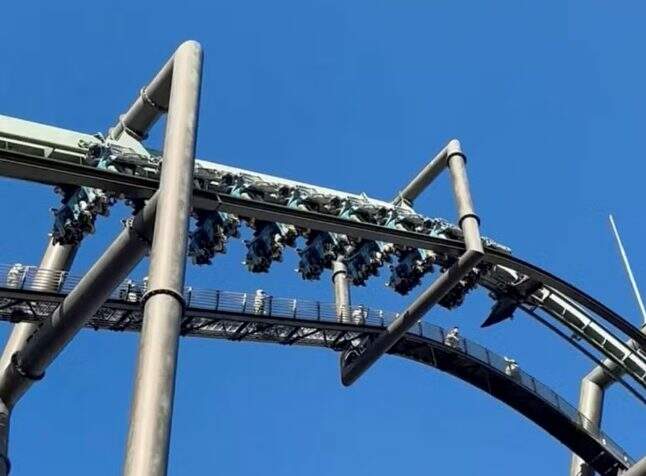 Um vídeo gravado por uma testemunha ocular mostra o carrinho travado com todos os visitantes de ponta-cabeça.