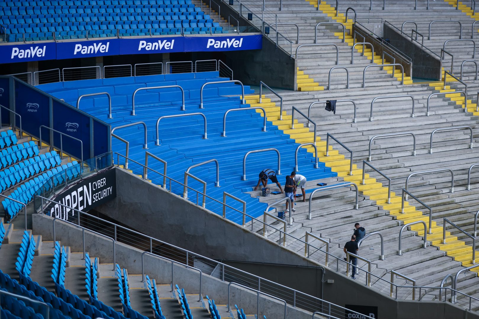 Nessa terça-feira (24), a revitalização da Arquibancada Norte da Arena do Grêmio avançou para uma nova etapa. O setor, conhecido por concentrar a parcela mais popular da torcida, passa a receber pintura no piso, incorporando ainda mais as cores associadas ao clube e reforçando a identificação do público com o estádio.
