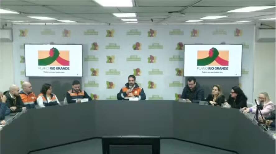 Após recapitular as ações e números do combate às enchentes que afetam o estado, Eduardo Leite anunciou a criação do “Plano Rio Grande”, dedicado a “reconstruir vidas, lugares e o futuro do estado”, de acordo com o governador.