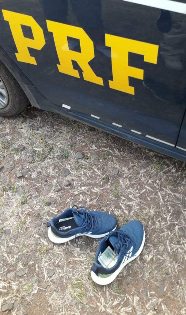 A PRF (Polícia Rodoviária Federal) apreendeu, nesta segunda-feira (21), dólares sem comprovação de origem que estavam escondidos embaixo das palmilhas dos tênis do motorista de um carro na BR-287 em Santiago.