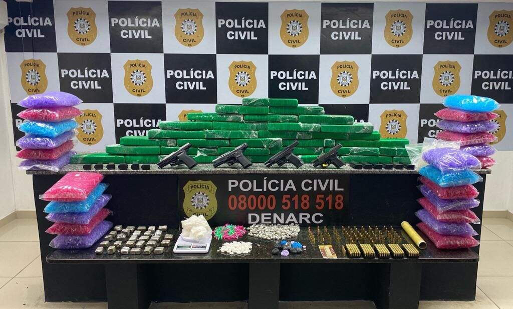 Mais de 40 quilos de maconha, um quilo de cocaína, centenas de pedras de crack, embalagens para acondicionar as drogas, quatro pistolas com numeração raspada, centenas de munições de calibres diversificados e dezenas de carregadores foram apreendidos. Um veículo utilizado para a entrega dos entorpecentes, avaliado em mais de R$ 250 mil, também foi recolhido.