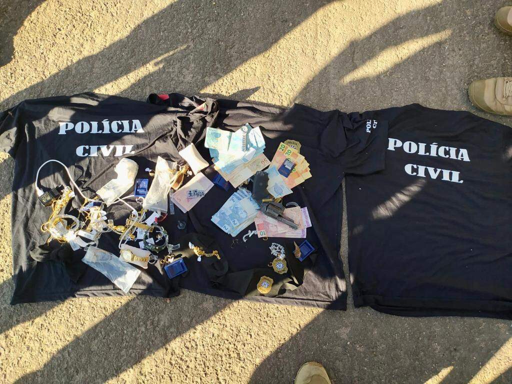 Durante a tentativa de fuga eles arremessaram do carro as joias roubadas, um revólver e camisetas semelhantes às da Polícia Civil.