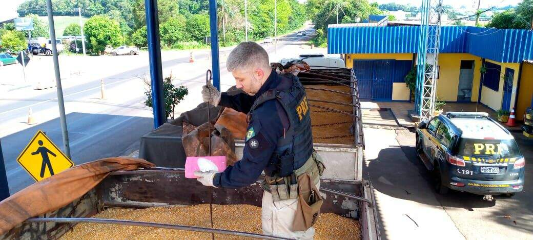 O motorista apresentou aos policiais o documento fiscal da carga de milho que transportava e que teria como destino a cidade de Lajeado.