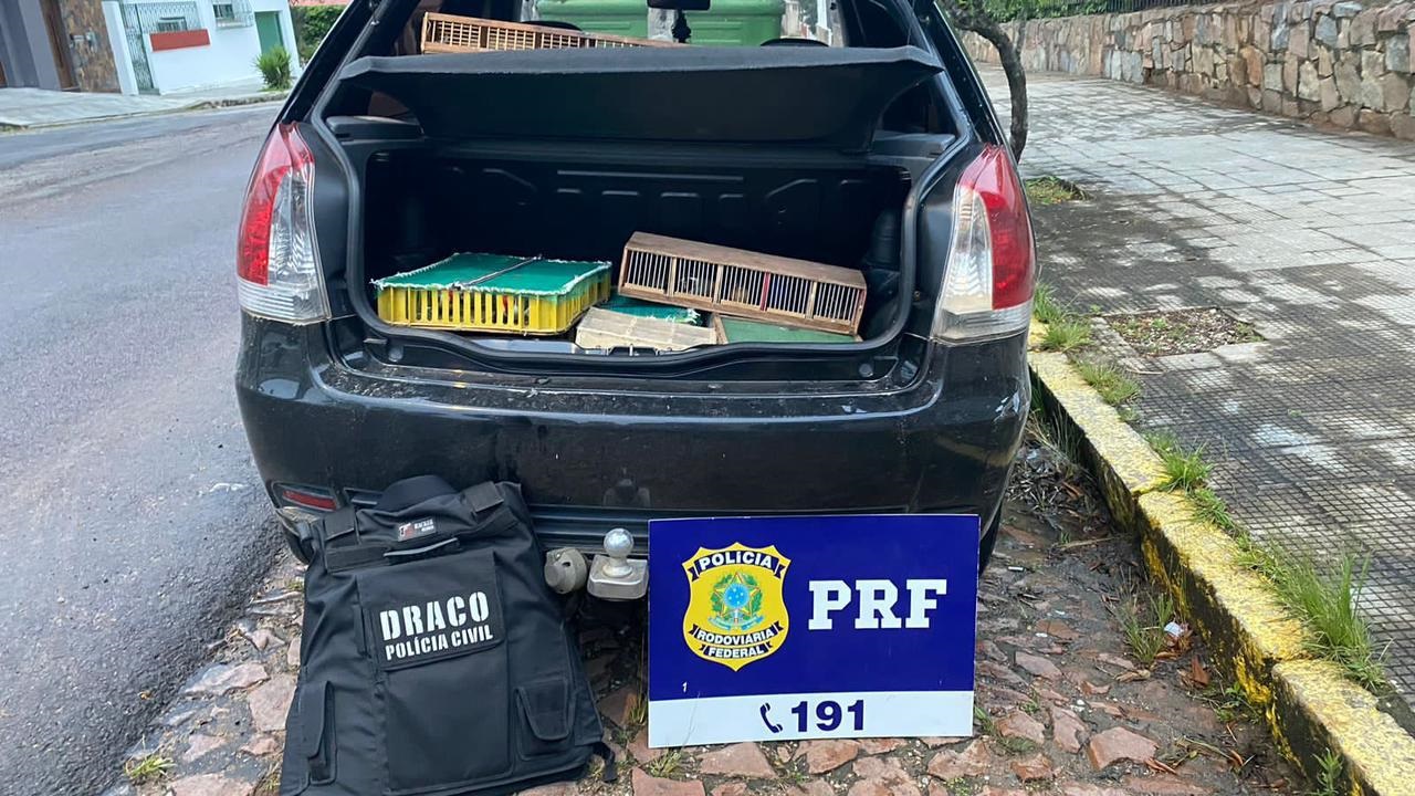 A Polícia Rodoviária Federal e a Polícia Civil resgataram aproximadamente 150 pássaros silvestres que eram transportados ilegalmente no porta-malas de um carro. Três pessoas foram presas. A abordagem ocorreu na BR 293, em Bagé.