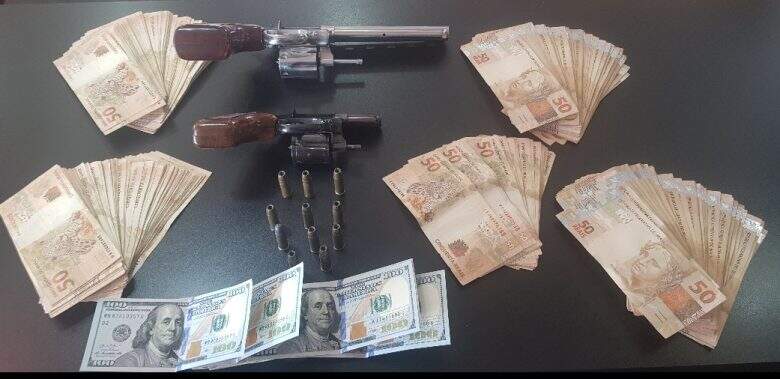 Armas, munições e dinheiro foram apreendidos. (Foto: Polícia Civil/Divulgação)
