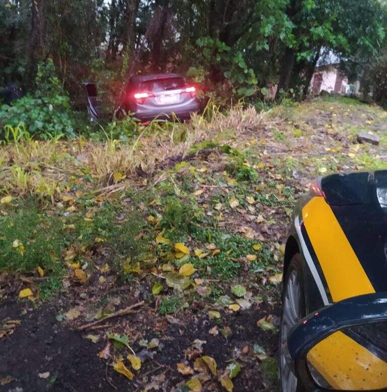 Após alguns quilômetros, o fugitivo perdeu o controle do veículo, que saiu da pista e colidiu com algumas árvores. Os dois ocupantes continuaram fugindo a pé e entraram em um mato localizado ao lado da rodovia.