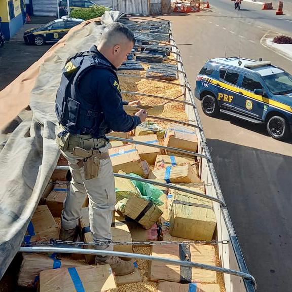 Na manhã desta quarta-feira (14), a PRF (Polícia Rodoviária Federal) apreendeu uma carga de quase três toneladas de maconha que era transportada em uma carreta carregada com milho. Um traficante foi preso.