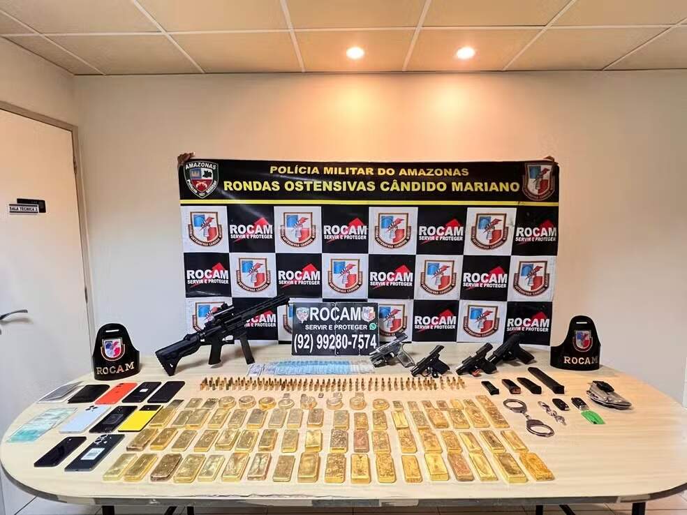 A ação foi realizada por equipes das Rondas Ostensivas Cândido Mariano (Rocam), da Polícia Militar. O grupo foi flagrado com o ouro e outros materiais durante uma abordagem.