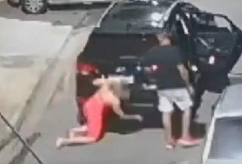 A mulher começa a tentar tirá-lo a força do carro, mas não consegue. Segundos depois, Ambos saem do automóvel e começam a discutir do lado de fora. Ele começa a agredi-la. O policial dá uma série de socos no rosto de Erika, e efetua pelo menos dois disparos contra ela. A mulher cambaleia e cai no chão. O soldado entra no carro e dá meia volta com o veículo, mas para novamente e começa a tentar arrastar a vítima até o veículo. Nesse momento, moradores saem das suas casas e acompanham a ação.