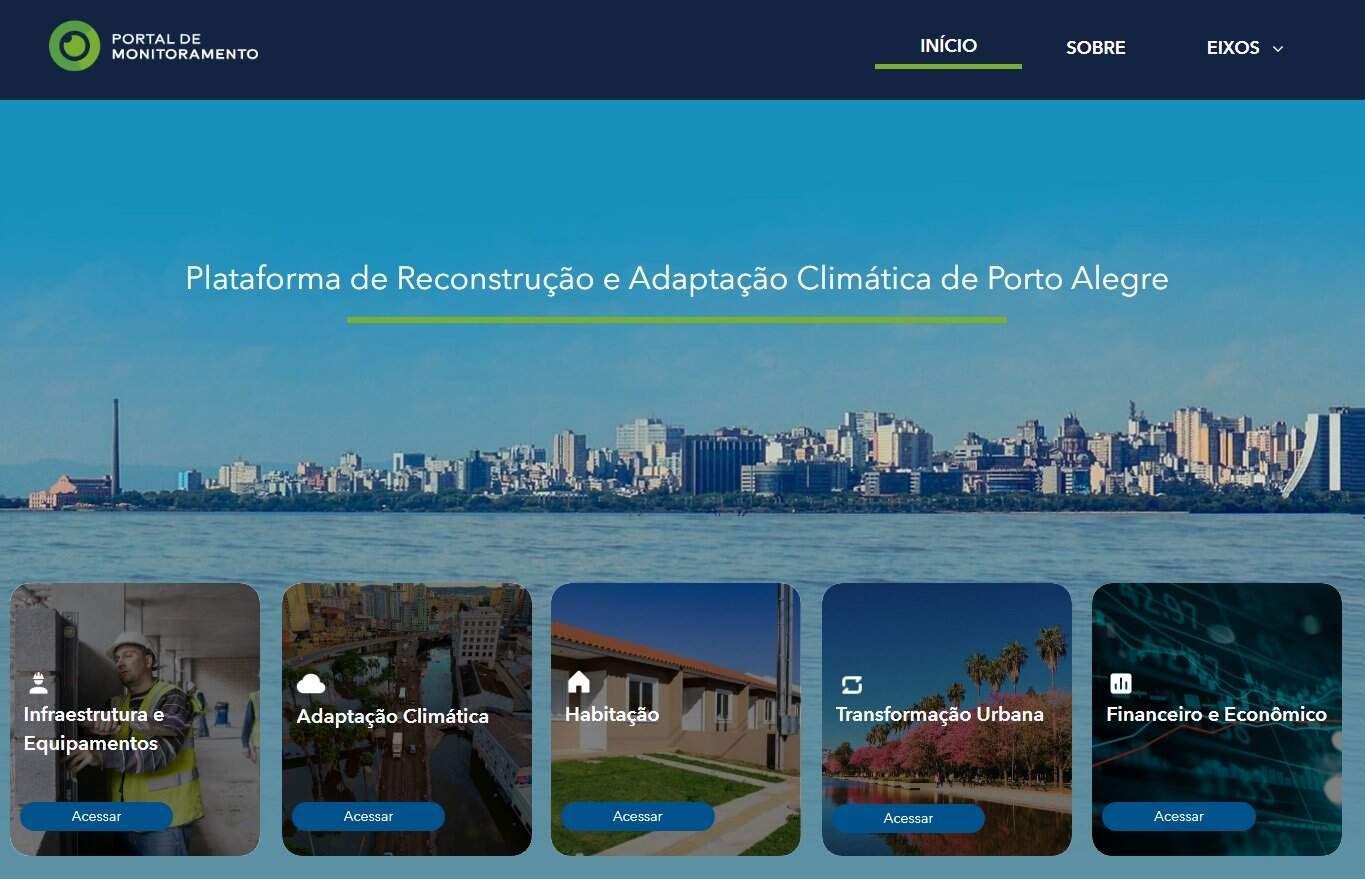 A plataforma online é dividida em cinco eixos: infraestrutura e equipamentos, adaptação climática, transformação urbana, habitação, e aspectos financeiros e econômicos. Quem acessa o endereço virtual encontra dados atualizados sobre: