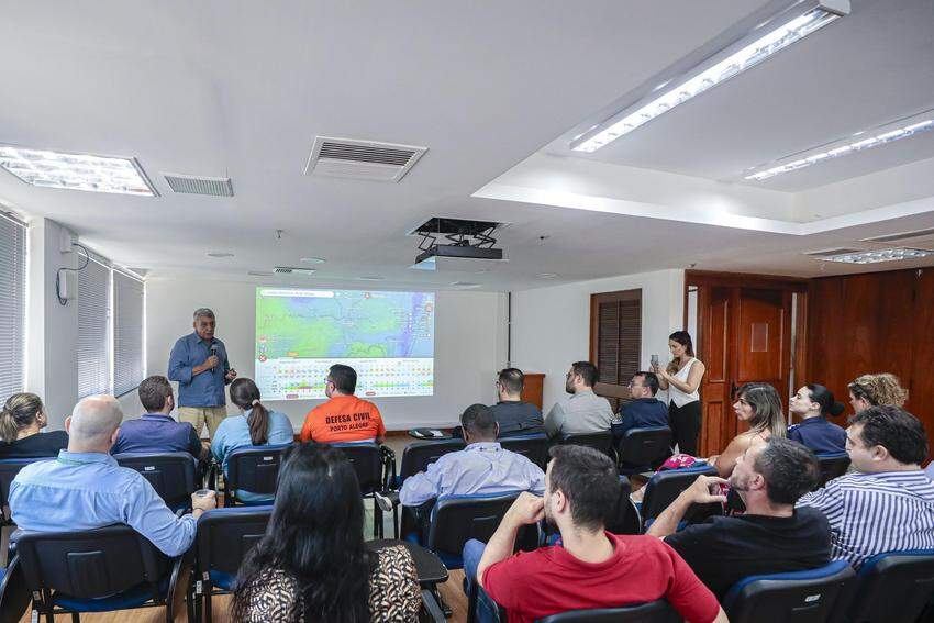 O prefeito Sebastião Melo coordenou reunião da Copae (Comissão Permanente de Atuação em Emergências), no Centro Administrativo Municipal, para mobilizar as equipes das secretarias em caso de ocorrências devido ao clima.