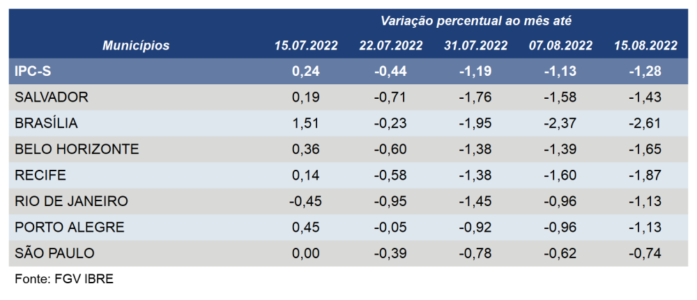 Além de Porto Alegre, o IPC-S caiu em outras cinco das sete capitais pesquisadas pela FGV na segunda semana deste mês.