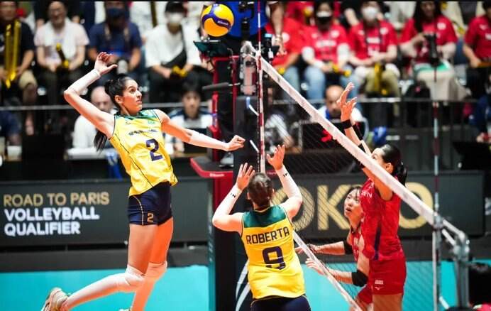 Brasil e Japão disputaram uma batalha épica valendo a vaga nos Jogos Olímpicos de Paris na manhã deste domingo (24). Na casa das japonesas, em Tóquio, a Seleção Brasileira de vôlei feminino fez uma partida memorável e carimbou o passaporte rumo à capital francesa. A decisão veio apenas no tie-break, quando a equipe de José Roberto Guimarães fechou o duelo em 3 sets a 2 (parciais de 25/21, 22/25, 27/25, 15/25 e 15/10). Destaque para Gabi, que terminou o jogo com 23 pontos.