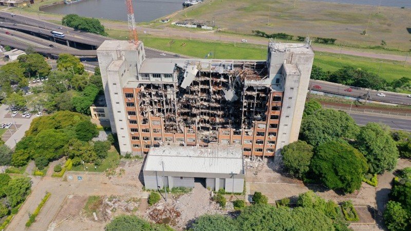 Uma operação especial com artefatos explosivos implodiu os escombros que ainda restavam do prédio da SSP (Secretaria de Segurança Pública), neste domingo (06), em Porto Alegre.