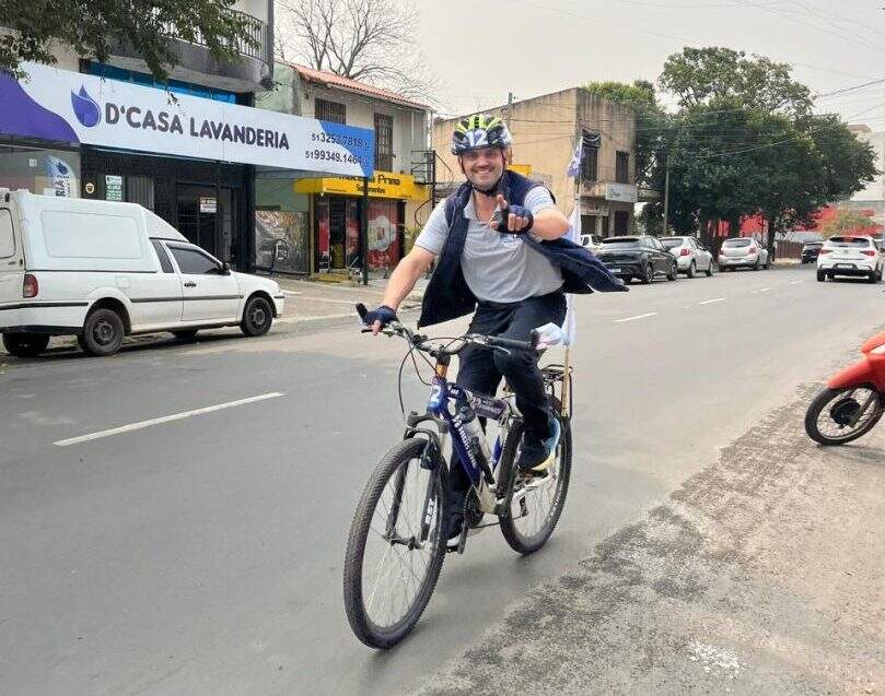O prefeito de Guaíba, Marcelo Maranata (PDT), iniciou, na madrugada desta sexta-feira (3), uma viagem de bicicleta rumo a Joinville, em Santa Catarina, acompanhado pelo ciclista Gilnei Andreotti, que tem 44 anos de experiência em expedições por diversos países da América Latina.