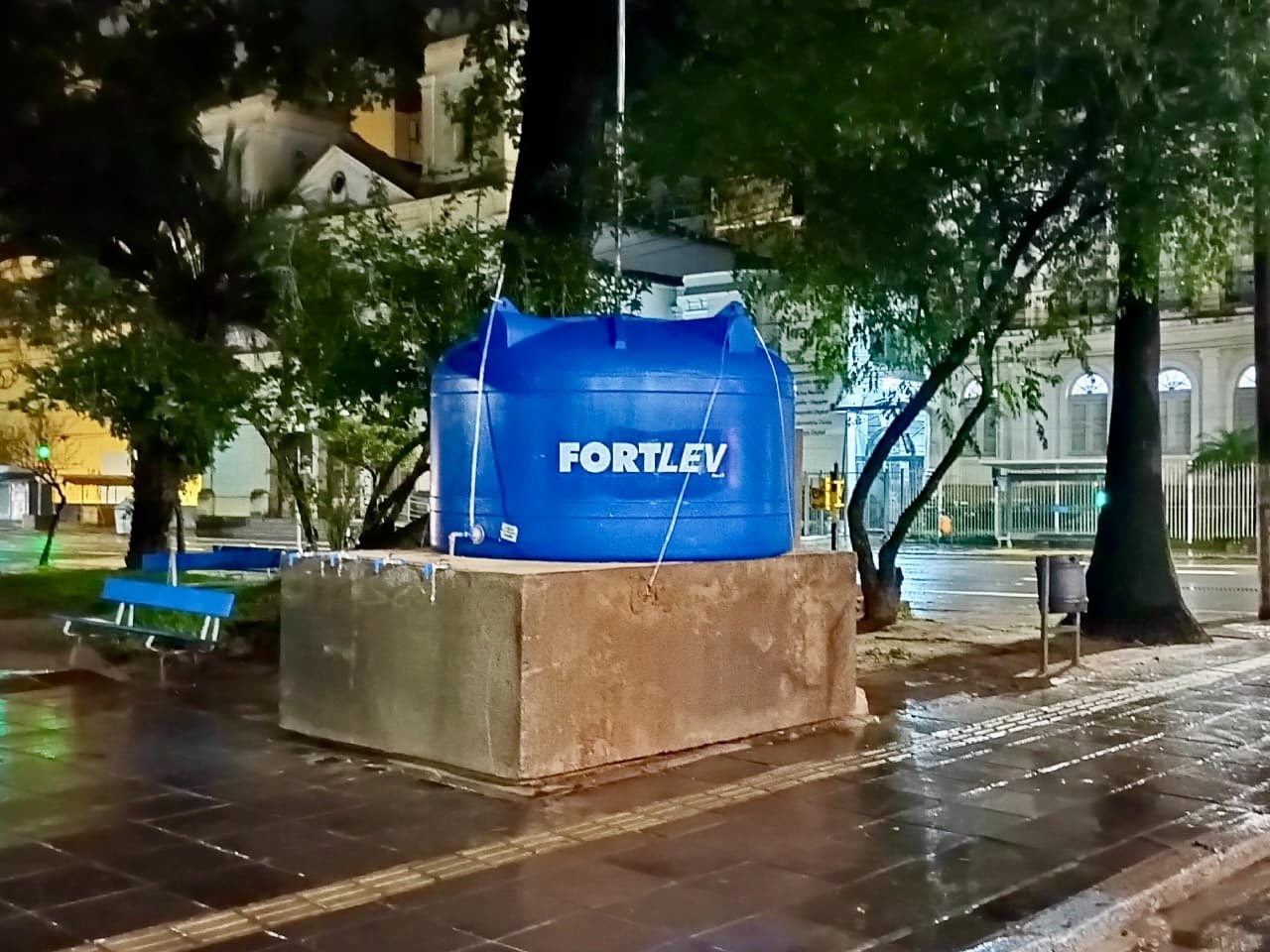 O Departamento Municipal de Água e Esgotos (Dmae) de Porto Alegre instalou no final da tarde desta sexta-feira (10), um reservatório comunitário na Praça Dom Sebastião, também conhecida como praça do Rosário, na avenida Independência, 270, bairro Independência.