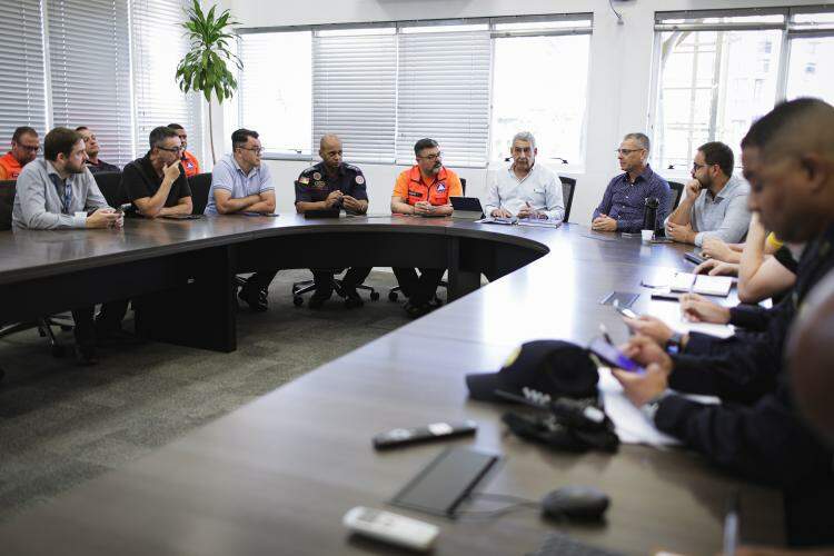Com a possibilidade de chuva intensa e rajadas de vento nas próximas horas, o prefeito Sebastião Melo coordenou reunião com as equipes do município no Ceic (Centro Integrado de Comando de Serviços de Porto Alegre) na manhã desta quarta-feira (02). Participaram também representantes da CEEE Equatorial e do Corpo de Bombeiros.