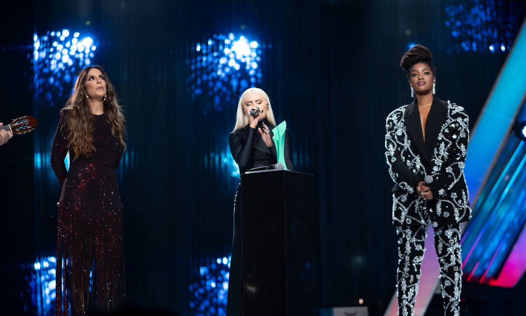 Depois de um VT com momentos de Paulo ao longo dos prêmios anteriores, IZA e Mariah Nala cantaram “Gostava tanto de você”, de Tim Maia.