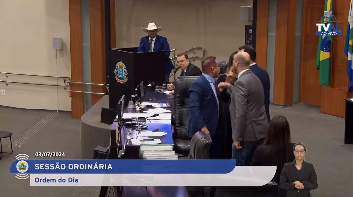 O confronto foi separado por deputados que estavam ao redor. Ele ocorreu durante a votação de um projeto de lei que obriga que haja licitação para o BRT (ônibus de trânsito rápido) em Cuiabá com a tarifa de, no máximo, R$ 1 por cinco anos.