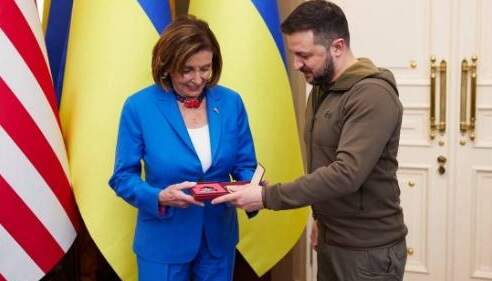 Durante a visita, o presidente ucraniano deu a “Medalha da Ordem da Princesa Olga” para Pelosi por sua “significativa contribuição pessoal” ao reforço das relações entre EUA e Ucrânia. O reconhecimento lembra Olga, a primeira mulher a reinar a Rússia de Kiev, uma confederação que existiu entre os séculos IX e XIII.