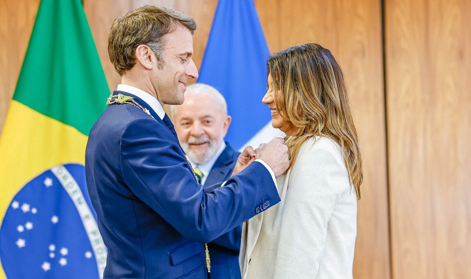 “Em nome da República francesa, faço-a oficial da Legião de Honra”, disse Emmanuel Macron, durante cerimônia no Palácio do Planalto. Lula já tem a insígnia mais elevada da Ordem. Na mesma cerimônia, o presidente brasileiro concedeu a Ordem Nacional do Cruzeiro do Sul a Emmanuel Macron. A honraria, instituída pelo imperador D. Pedro I, é a mais alta condecoração concedida a um cidadão não brasileiro.