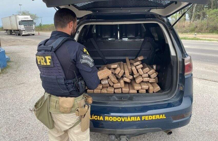 Na tarde desta quinta-feira (29), a PRF (Policia Rodoviária Federal) prendeu um casal e apreendeu um carro com 70 quilos de maconha que estavam no porta-malas. O casal estava com os dois filhos, de um e três anos. A ação ocorreu na BR-293, em Bagé, na Região da Campanha.