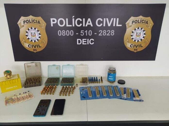 Durante a ação no apartamento, especificamente em um cômodo acessado apenas pelo investigado, foram encontrados 429 cartuchos calibre .22LR, 20 munições calibre .40 S&W, 60 munições calibre .380 AUTO, 01 munição calibre 9MM LUGER, 02 cases contendo no total 253 munições calibre 380 ACP e 180 munições recarregadas calibre .40 S&W.