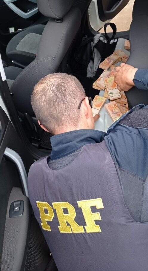 Os policiais abordaram um Peugeot 208, com placas de Uruguaiana. Durante buscas no interior do veículo, encontraram 5 milhões de pesos argentinos escondidos embaixo do banco traseiro. A quantia é equivalente a mais de 160 mil reais.