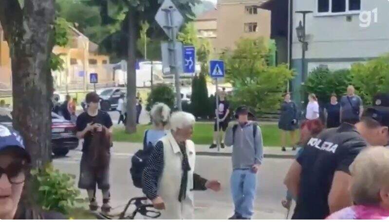 Apenas um homem parecia protestar com um cartaz nas mãos. De acordo com a imprensa eslovaca, o autor dos tiros teria 71 anos.
