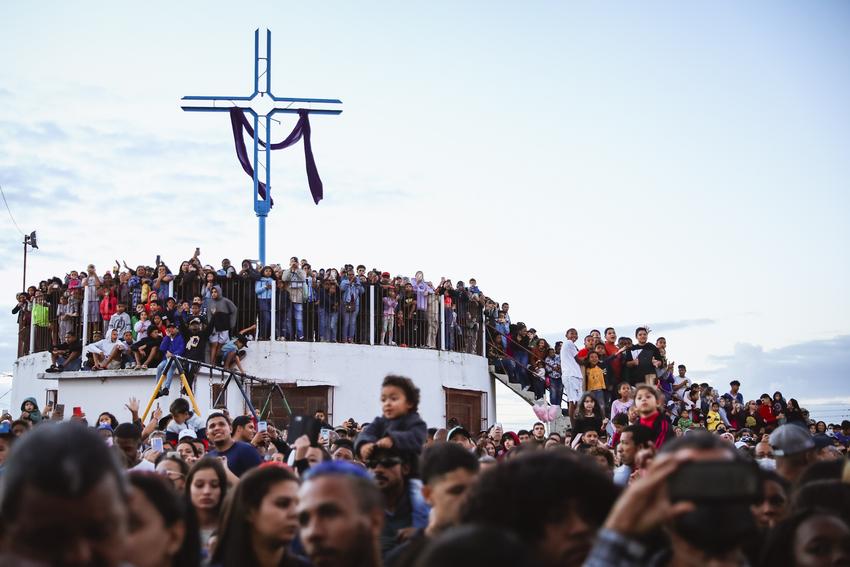 Depois de dois anos de ausência, em razão da pandemia, essa Sexta-feira Santa (15) foi marcada pela procissão e cerimônia da Paixão de Cristo, no Morro da Cruz, na Zona Leste de Porto Alegre. Neste ano, ao contrário da tradicional Via Sacra, foi realizado um rito cênico.
