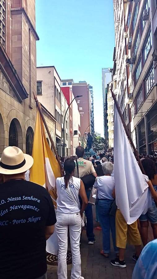 Sob um forte sol, milhares de fiéis participaram, na manhã desta sexta-feira (2), da tradicional procissão em homenagem à Nossa Senhora dos Navegantes em Porto Alegre.