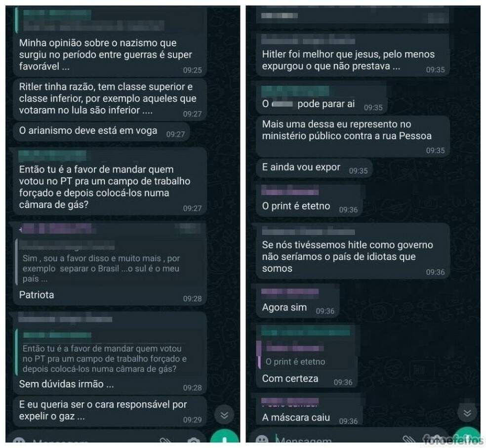 Apologia do nazismo é crime previsto na Lei 7.716/1989. No diálogo, em um aplicativo de mensagens divulgado nas redes sociais, o professor elogiou o nazismo e afirmou que “Hitler foi melhor que Jesus”.