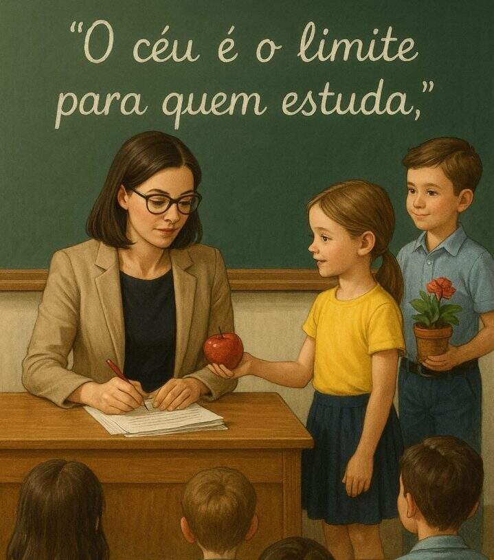 Era ele quem decifrava o quadro-negro, o barulho da sala, a timidez da nossa voz levantando a mão pela primeira vez. Naquele tempo, tudo era maior: o caderno novo, o cheiro de giz e do velho mimeógrafo, a história que parecia mágica, a bronca que fazia sentido.