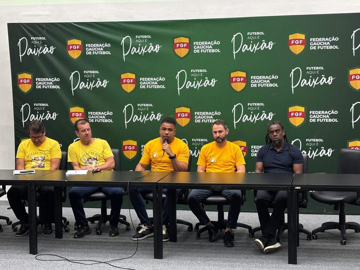 Na manhã desta quinta-feira (19), o tetracampeão mundial Dunga e o agente de futebol Vinicius Prates marcaram presença na sede da Federação Gaúcha de Futebol para o encerramento de ano do projeto Re.Construir, iniciativa que entregará mais de 100 casas para famílias atingidas pelas enchentes até janeiro de 2025.