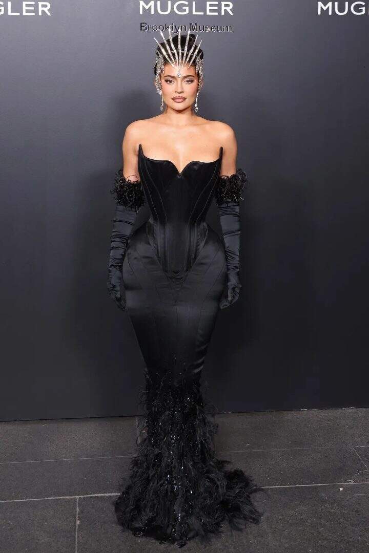 Kylie Jenner roubou a cena ao compareceu à abertura da exibição Mugler Couturissime na cidade de Nova York, nos Estados Unidos. A modelo surgiu no tapete vermelho com vestido preto e ostentou uma coroa toda feita de diamantes.