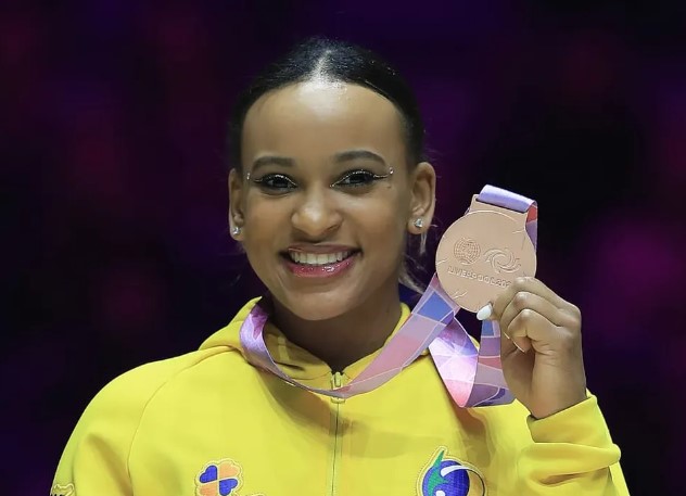 Despedida de Baile de Favela bronzeada! Neste domingo (5), em Liverpool, a ginasta Rebeca Andrade se apresentou pela última vez com a música que viralizou no Brasil no solo. A campeã mundial no individual geral, fez sua apresentação e garantiu o terceiro lugar com 13,733 pontos. Arthur Nory também ficou com a medalha de bronze, mas na prova da barra fixa e nota de 14,466.
