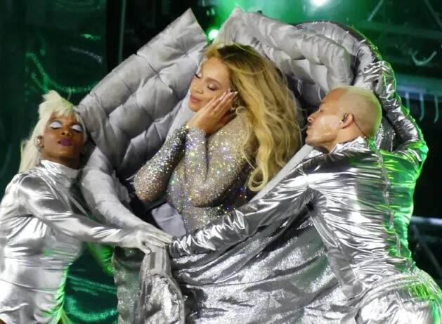 O “Queens remix” da faixa “Break my soul”, com Madonna e Beyoncé, é um dos pontos altos do show. É quando a cultura “ballroom” toma de assalto o espetáculo. No filme, personagens fundamentais das boates underground de “voguing” ganham visibilidade pop, como os experientes Kevin Aviance e Kevin JZ Prodigy, até os mais jovens, como Honey Balenciaga, de 22 anos.