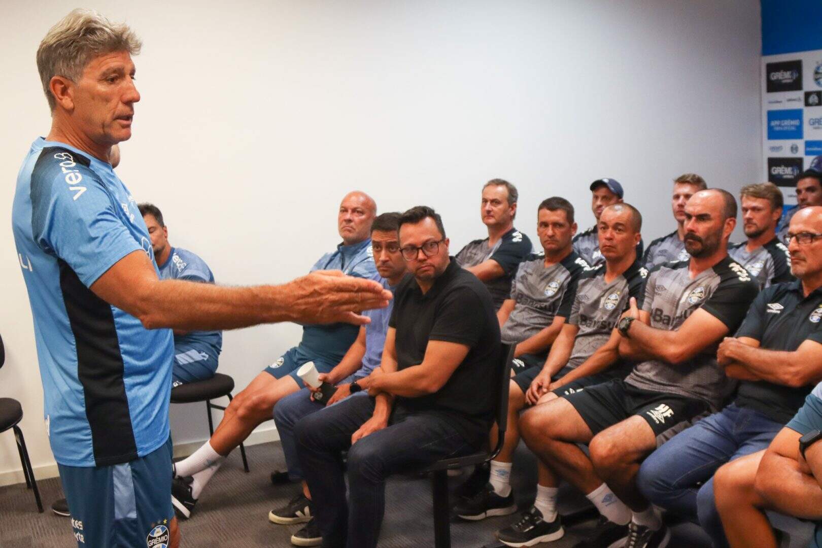 Dentro da programação estabelecida na XI Semana de Estudos das categorias de base, nessa quarta-feira (15), no CT Luiz Carvalho, o técnico Renato Portaluppi e sua comissão técnica receberam os profissionais responsáveis pela formação dos jovens atletas gremistas para uma troca de ideias.