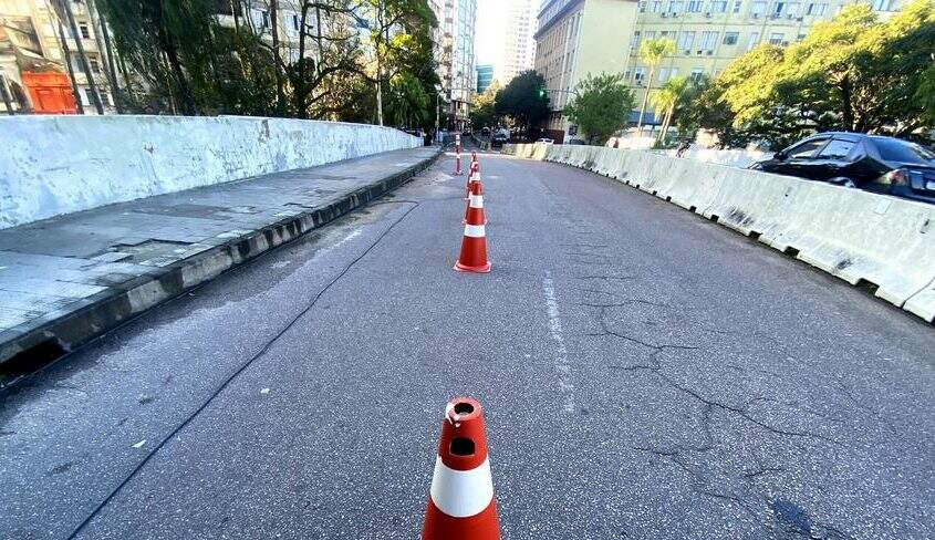 Equipes substituirão as juntas de dilatação da estrutura do viaduto. Estes componentes também são conhecidos como juntas de movimento que servem para absorver os impactos causados pelo trânsito.