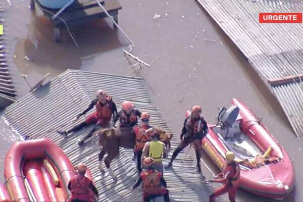 “Talvez um dos mais emblemáticos momentos que eu tenha visto e que, talvez outras pessoas tenham visto na televisão, foi um cavalo solitariamente no telhado à espera de alguma solução. Ao que se noticiou, o cavalo foi salvo, o que é um bom momento, mas nós já tivemos mais de uma centena de mortes e ainda há muitas partes do Estado sob a água”, disse Barroso.