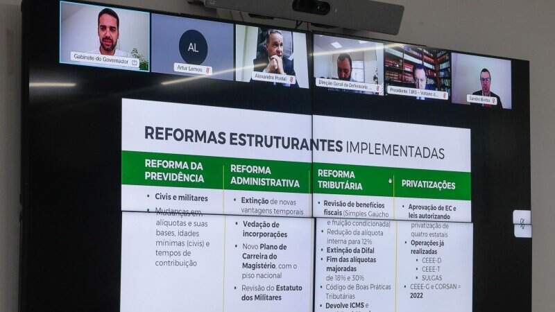 Pela manhã, o governador em exercício, Ranolfo Vieira Junior, conduziu uma reunião virtual com o Conselho de Estado e jornalistas. O governador Eduardo Leite detalhou as principais medidas de ajuste adotadas nos últimos anos, ressaltando as mudanças aprovadas pela Assembleia Legislativa, e anunciou um plano para a quitação do passivo de precatórios até 2029.