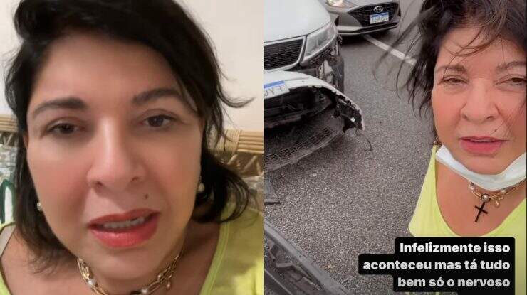 “O cara arrebentou o carro dele entrando no meu carro por trás”, disse ela. “Bateu a minha cabeça, mas eu bati primeiro o ombro e protegi a cabeça. Já tomei remédio, mas o que está doendo é o ombro. O ombro está doendo muito”.