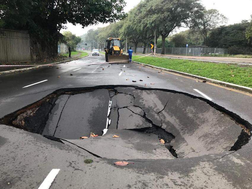 O rompimento da tubulação de uma rede pluvial abriu uma cratera, no fim da madrugada desta quarta-feira (03), na avenida Loureiro da Silva, perto da Orla do Guaíba, em Porto Alegre. O asfalto começou a ceder no local já na noite anterior.