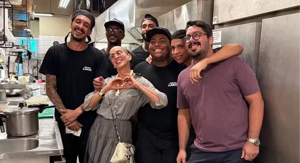 Acompanhada de amigos, a atriz apostou em clássicos do braseiro: bife de ancho (R$ 98) e copa lombo (R$ 46), com farofa (R$ 25, para compartilhar) e baião de dois com aipim frito (R$ 36). Antes para abrir o apetite, pastéis de carne e queijo (R$ 8 a unidade) e pão de alho (R$ 15). Para refrescar, as escolhas foram o mate da casa (R$ 12) e a caipirinha de limão (R$ 22), que não pode faltar.