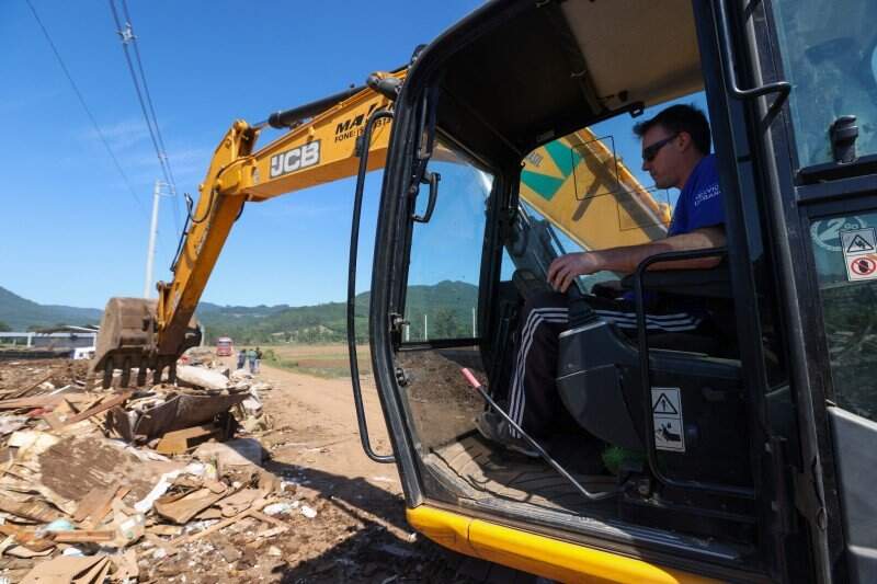 No segundo dia da operação para retirada dos resíduos decorrentes das enchentes que atingiram cidades do Vale do Taquari, no Rio Grande do Sul, 20 carretas atuaram, na sexta-feira (1º), no transporte dos materiais, saindo das cidades de Roca Sales e Encantado com destino ao aterro sanitário de Minas do Leão.