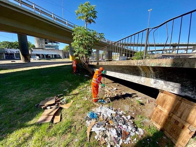Equipes da prefeitura realizam limpeza no entorno da antiga ponte do Guaíba. (Foto: PMPA/Divulgação)